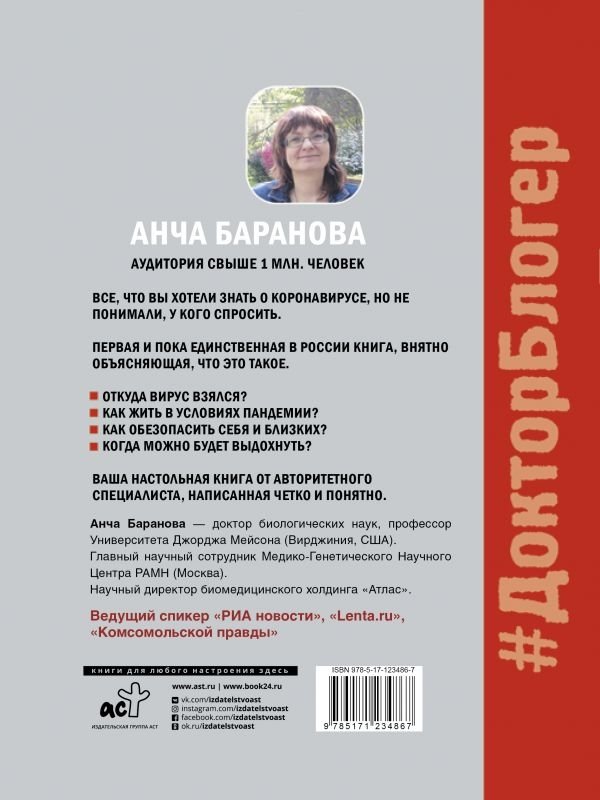 Все, что вы хотели знать о коронавирусе, но не понимали у кого спросить. Первая и пока единственная в России книга, внятно объясняющая, что это такое. Откуда вирус взялся? Как жить в условиях пандемии? Как обезопасить себя и близких? Когда можно будет выдохнуть? Ваша настольная книга от авторитетного специалиста, написанная четко и понятно.