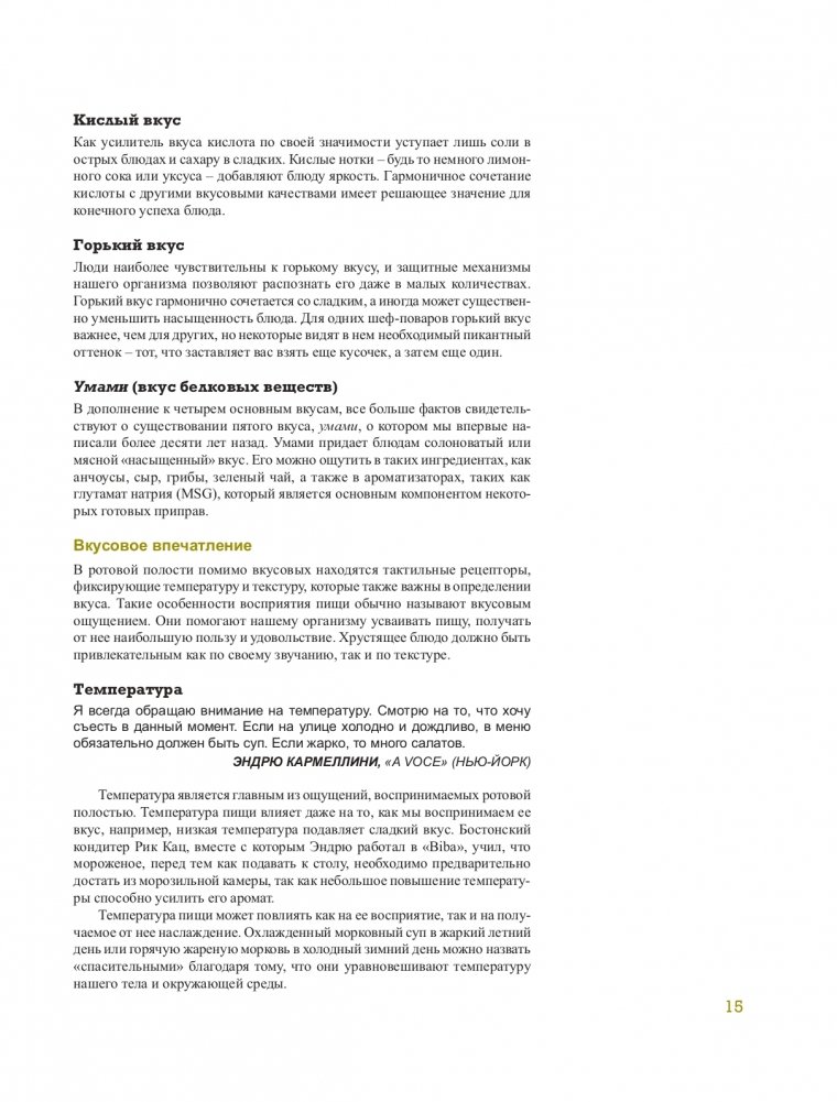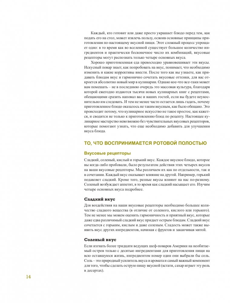 * определять роль, которую играет каждый из четырех вкусов — соленый, кислый, горький и сладкий, — и гармонично их сочетать