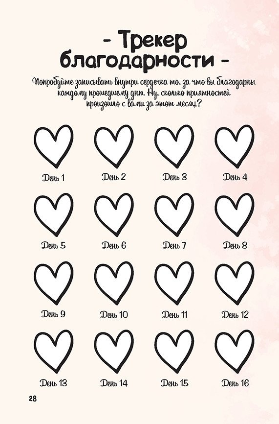 Также вас ждет 40 добрых и дурашливых челленджей, которые направят ваши мысли в творческое русло, позволят чувствовать себя более раскованно и относиться ко всему с юмором! В конце дневника вы найдете несколько разворотов с нестандартными линовками. Используйте их для повседневных записей, зарисовок, складывания фигурок оригами или чего вашей душе угодно. Заполняйте страницы дневника в любой последовательности, делитесь своими достижениями и творческими способностями. И, конечно, любите себя и наслаждайтесь жизнью.