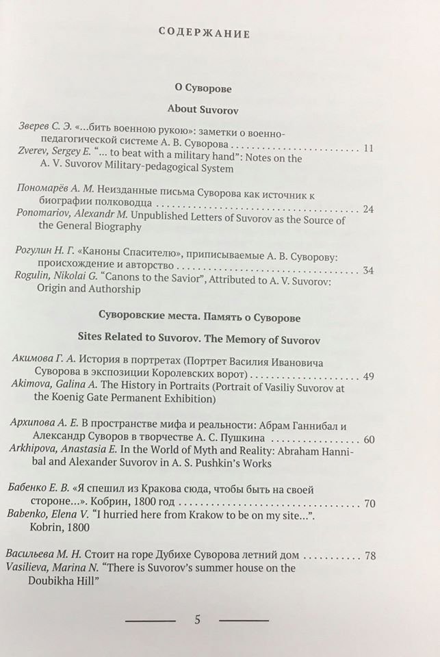 В сборник вошли тексты докладов международной научной конференции, организованной Государственным мемориальным музеем А.В. Суворова, которая проходила 22—24 ноября 2019 г. Представленные материалы посвящены жизни и деятельности А.В. Суворова, истории и современности суворовских мемориалов, сохранению памяти о великом русском военачальнике, суворовским традициям и истории русской армии.
