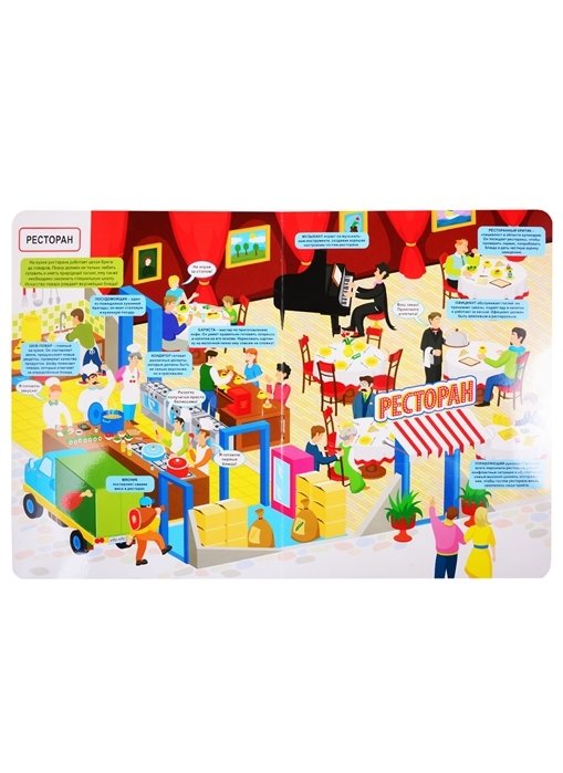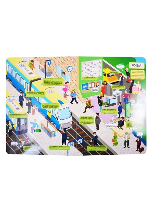 Ты уже решил, кем хочешь стать, когда вырастешь? В мире столько профессий, что каждый человек может выбрать себе дело по душе! Но для начала нужно больше узнать о той или иной работе, согласен? Что делает флорист? Кто рисует лучше всех на молочной пенке? Благодаря кому поезда отправляются и прибывают на вокзал вовремя? Открывай книгу и давай вместе посмотрим, кто чем занимается. Только не забудь заглянуть в окошки - там много интересного!