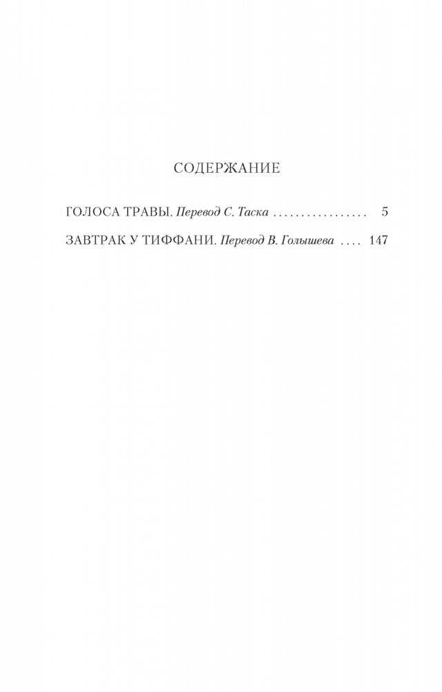 Вниманию читателя предлагаются две его классические повести: лирические «Голоса травы», публикующиеся в новом переводе, а также самое знаменитое произведение Капоте, прославленное в 1961 году экранизацией с Одри Хепберн в главной роли, сыгравшей главную героиню повести Холли Голайтли, одну из самых ярких и необычных женщин американской литературы. Эксцентричную, полную жизни Холли влечет к себе мир богатых людей, сверкающий яркими огнями бриллиантовых колье. Руководствуясь в своих поступках лишь голосом сердца, сочетая детскую наивность с чарующим обаянием настоящей женщины, она как бы воплощает в себе саму сущность Нью-Йорка — города, в котором мечты лежат на расстоянии вытянутой руки, отгороженные блестящими стеклами пленяющих взгляды витрин.