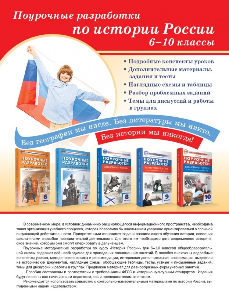 Пособие содержит подробные поурочные разработки к учебнику Н.М. Арсеньева, А.А. Данилова и др. под ред. академика РАН А.В. Торкунова (М.: Просвещение). К урокам дается необходимый педагогу для проведения полноценных занятий материал: методические советы и рекомендации, интересная дополнительная информация, разнообразные документы, вопросы и задания для устных и письменных ответов обучающихся, темы для дискуссий и работы в группах, тесты, схемы, таблицы.