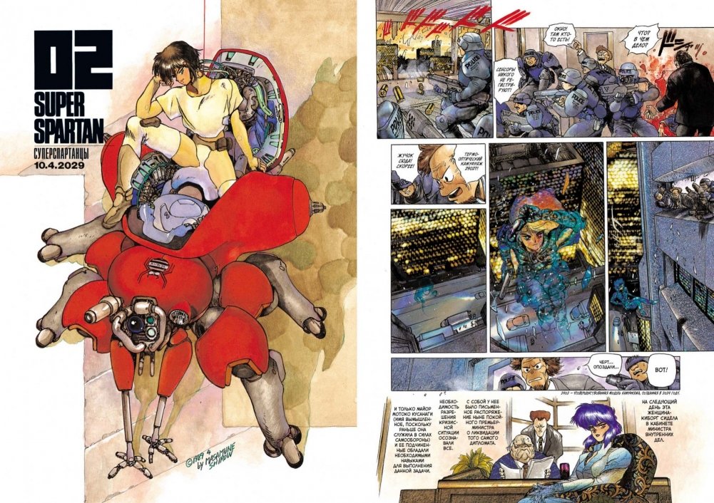 Классика киберпанка, всемирно известная манга Сиро Масамунэ (настоящее имя мангаки - Масанори Ота) о деятельности Девятого отдела, ведущего в Японии первой трети XXI века борьбу с кибер- и просто террористами, – одно из важнейших произведений, представляющих новую реальность ближайшего будущего, когда машинный интеллект и бессмертная человеческая душа станут единым в «доспехах» сознания. Начав выходить в мае 1989 года в журнале Young Magazine, манга обрела статус культовой, вдохновив многих подражателей. Сам же автор вдохновлялся произведением Артура Кёслера «Дух в машине» (Ghost in the machine), которое, в свою очередь, вобрало в себя идеи Декарта о дуализме сознания и тела.