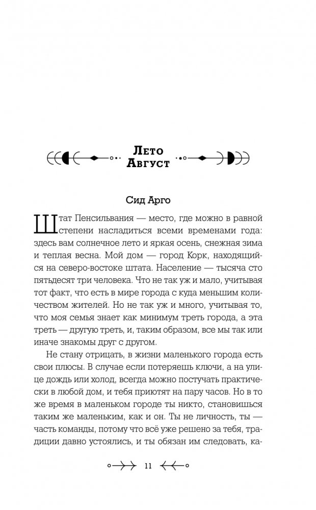 Меня зовут Сид Арго. Мой дом – город Корк, один из самых консервативных и религиозных в штате Пенсильвания. У нас есть своеобразная Библия (её называют Уставом), открыв которую, на первых ста пятидесяти страницах вы увидите свод правил, включающий обязательность молитв, служб и запреты. Запреты на всё. Нельзя громко говорить на улице. Нельзя нарушать комендантский час. Нельзя пропускать религиозные собрания. Нельзя. Нельзя. Нельзя. Ничего нельзя, кроме тайного ощущения собственной ничтожности…
