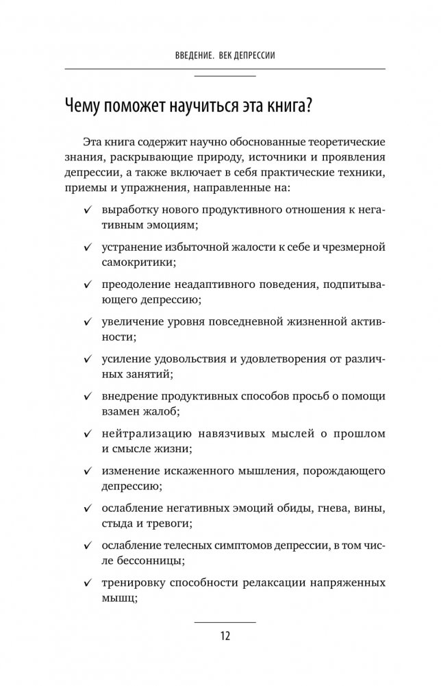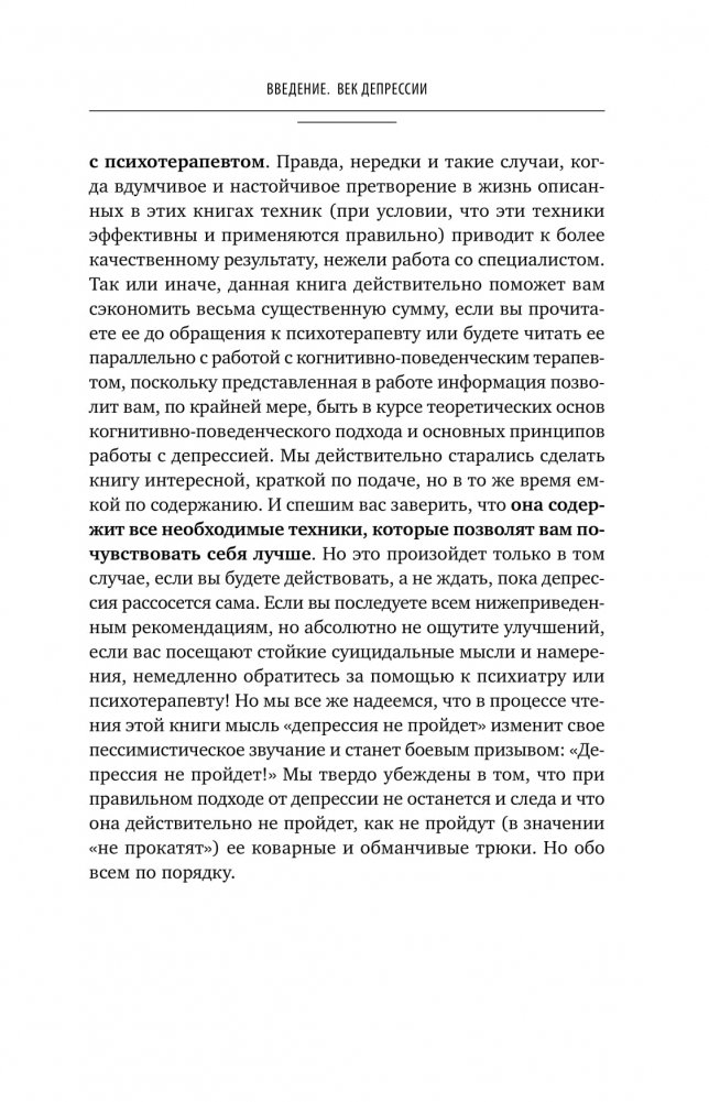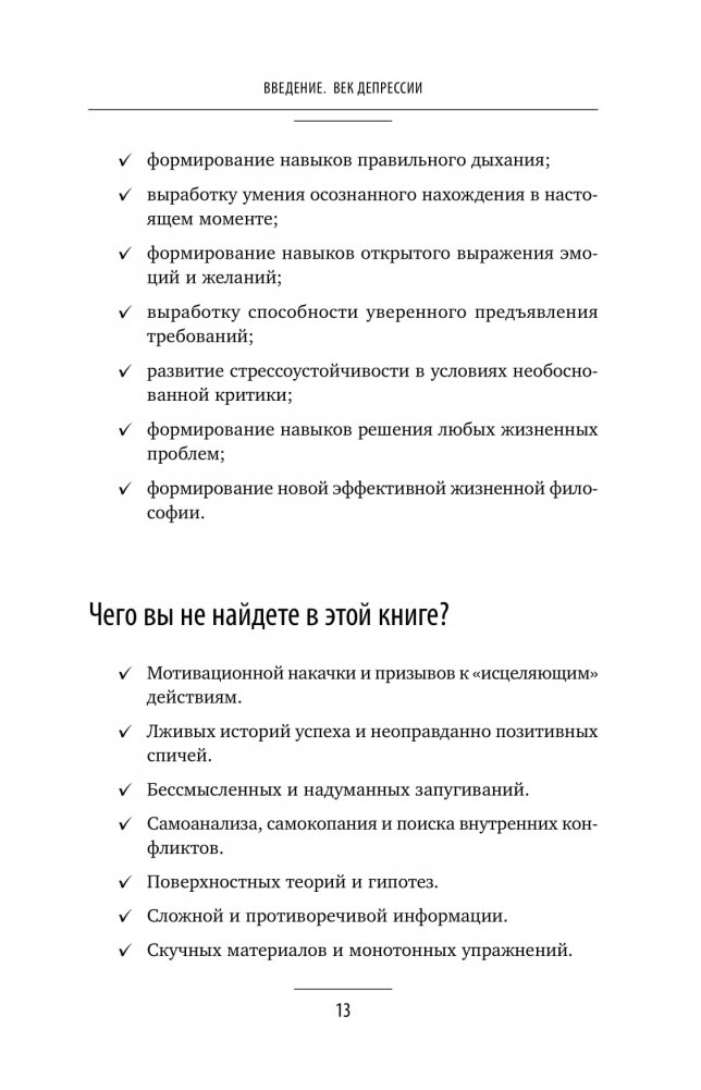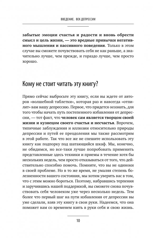 Эта книга — пошаговое руководство по избавлению от депрессии, тревоги, тоски и уныния. Без антидепрессантов, сеансов у психотерапевтов, постоянной самокритики и мыслительной жвачки.