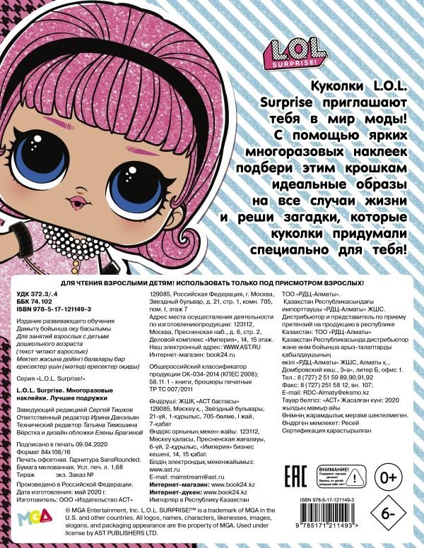 Куколки L.O.L. Surprise приглашают тебя в мир моды! С помощью ярких многоразовых наклеек подбери этим крошкам идеальные образы на все случаи жизни и реши загадки, которые куколки придумали специально для тебя!