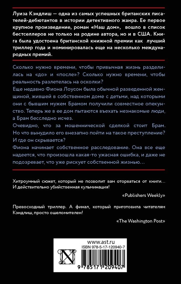 Еще недавно Фиона Лоусон была обычной разведенной женщиной, жившей в собственном доме с детьми, над которыми они с бывшим мужем Брамом получили совместное опекунство. Теперь же в ее дом пытаются въехать незнакомые люди, а Брам бесследно исчез.