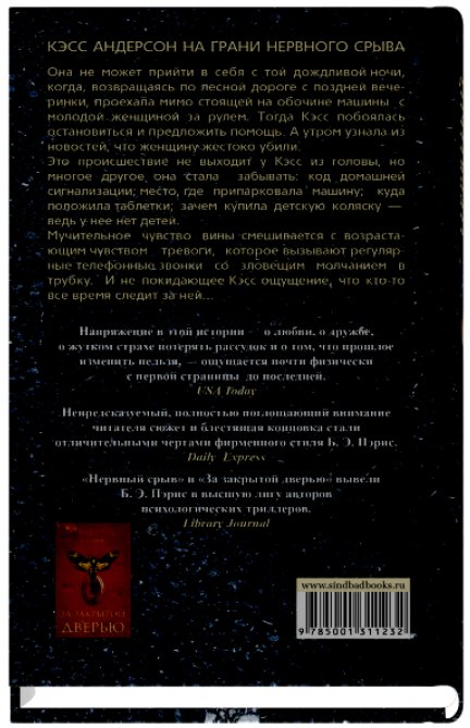 С тех пор Кэсс не может выбросить случившееся из головы, ее мучают угрызения совести. К ним добавляется тревога о собственном психическом здоровье - она забывает, приняла ли таблетки, не может вспомнить код домашней сигнализации, удивляется своим собственным покупкам. Неужели это проявления деменции, которой страдала ее рано ушедшая мать? Или дело в загадочных телефонных звонках, когда кто-то все время зловеще молчит в трубку? И в появившемся у Кэсс неотвязном ощущении, что за ней следят?..