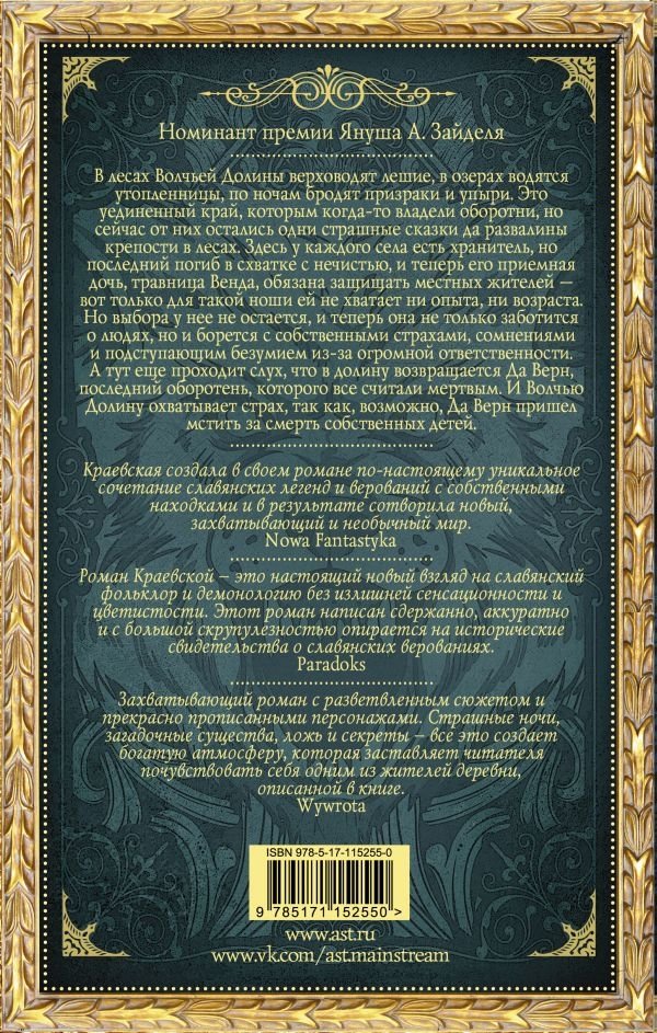 В лесах Волчьей Долины верховодят лешие, в озерах водятся утопленницы, по ночам бродят призраки и упыри. Это уединенный край, которым когда-то владели оборотни, но сейчас от них остались одни страшные сказки да развалины крепости в лесах. Здесь у каждого села есть хранитель, но последний погиб в схватке с нечистью, и теперь его приемная дочь, травница Венда, обязана защищать местных жителей – вот только для такой ноши ей не хватает ни опыта, ни возраста. Но выбора у нее не остается, и теперь она не только заботится о людях, но и борется с собственными страхами, сомнениями и подступающим безумием из-за огромной ответственности. А тут еще проходит слух, что в долину возвращается Да Верн, последний оборотень, которого все считали мертвым. И Волчью Долину охватывает страх, так как, возможно, Да Верн пришел мстить за смерть собственных детей.