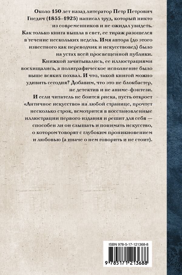 Интересна ли современному человеку история искусства, написанная почти полтора века назад? Выиграет ли сегодня издатель, предложив читателям эту книгу? Да, если автор «Всеобщей истории искусств» П.П. Гнедич. Прочтите текст на любой странице, всмотритесь в восстановленные гравюры и признайте: лучше об искусстве и не скажешь. В книге нет скучного перечисления артефактов с описанием их стилистических особенностей. В книге нет строгого хронометража. Однако в ней присутствуют – увлеченный рассказ автора о предмете исследования, влюбленность в его детали, совершенное владение ритмом повествования и умелое обращение к визуальному ряду. Познакомившись с трудом П.П. Гнедича однажды, читатель навсегда останется инфицирован искусством, по мнению современных издателей, это одна из прекрасных инфекций.