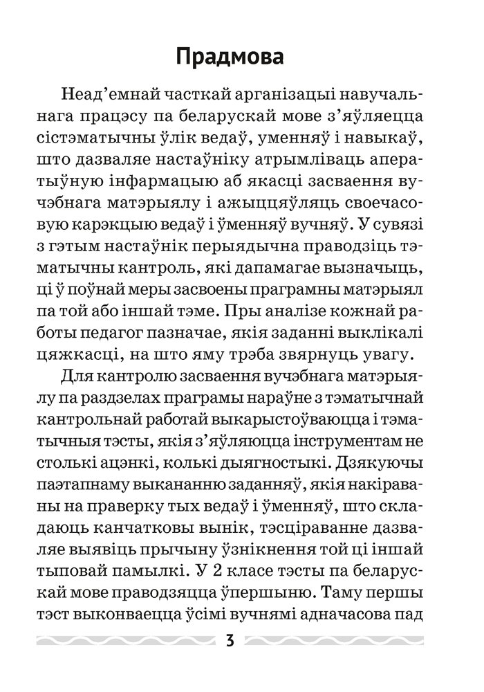 Беларуская мова. 2 клас. Тэматычны кантроль