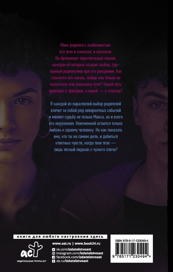 Макс родился с особенностью: его тело и женское, и мужское. Он проживает параллельные жизни, каждую из которых создает выбор, сделанный родителями при его рождении. Как сложится его жизнь, пойди она только по мужскому или женскому пути? Какой путь приведет к трагедии, а какой — к счастью? В каждой из параллелей выбор родителей влечет за собой ряд невероятных событий и меняет судьбу не только Макса, но и всего его окружения. Неизменной остается только любовь к одному человеку. Но как показать ему, кто ты на самом деле, и добиться ответных чувств, когда твое тело — лишь тесный пиджак с чужого плеча?