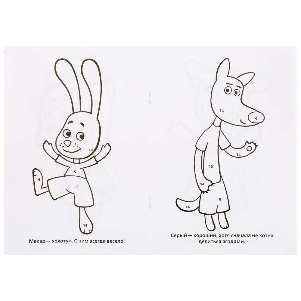 Малыш будет рад встрече с героями мультфильма на страницах раскраски. Пользуясь цветовыми подсказками, он правильно раскрасит части картинок. Благодаря компактным размерам раскраску удобно брать с собой в дорогу.