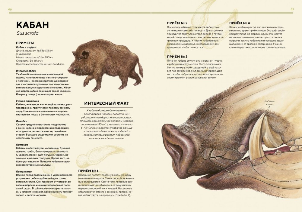 Также книга содержит много интересной информации о животных — от их повадок до особенностей питания. Рассмотри лесных обитателей в деталях и стань настоящим знатоком дикой природы!
