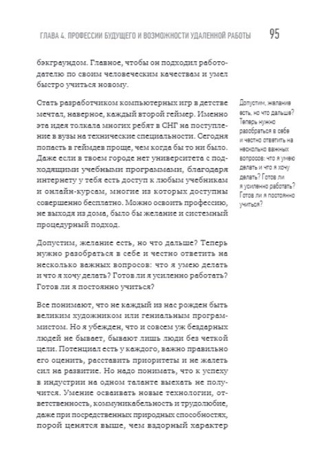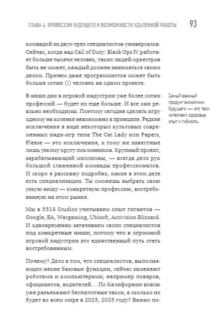 В этой книге вы сможете найти актуальную и практическую информацию о том, как попасть в игровую индустрию, как выбрать профессию по душе и как начать зарабатывать первые деньги, а также о том, как попасть на игровой рынок США, работая удаленно из Москвы, Казани, Минска или Ульяновска.