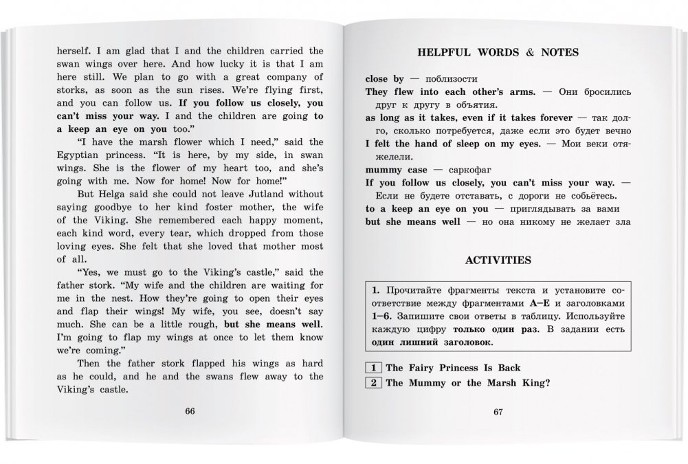 Книга представляет собой адаптацию сказки знаменитого датского писателя Ханса Кристиана Андерсена (1805-1875) "Принцесса из кувшинки" на английском языке. В ней рассказывается удивительная история о заколдованной дочери египетской принцессы и болотного царя по имени Хельга, которую аист нашёл в огромной кувшинке. Преодолеть зло и колдовские чары, найти своё счастье героине помогут магия, доброта, любовь близких и помощь верных друзей. Данное пособие поможет учащимся средней школы подготовиться к основному государственному экзамену по английскому языку. Текст пособия адаптирован в учебных целях до уровня Elementary. Каждая глава сопровождается комментарием, переводом трудных слов и выражений, а также упражнениями, направленными на формирование коммуникативной компетенции учащихся. Упражнения позволят сформировать коммуникативные умения в чтении, письменной речи, говорении, а также развить лексико-грамматические навыки. В конце пособия помещены ответы к большинству заданий, англо-русский словарь, а также тест в формате ОГЭ с ключами. Книга предназначена учащимся 5-8 классов образовательных организаций, а также широкому кругу лиц, изучающих английский язык.