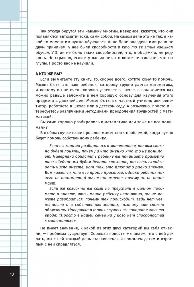 Новая методика, благодаря которой математику поймет каждый! Больше никакой зубрежки! Вы поможете ребенку достичь потрясающих результатов, всего лишь «отремонтировав» фундамент его знаний. Авторы опираются на проверенные методики обучения, ключевую роль в которых играет побуждение к активному мышлению и участию в поиске. Вам совсем необязательно хорошо разбираться в математике. Все, что нужно, — желание помочь ученику. В книге легко ориентироваться, все темы описаны понятным языком. Наконец-то появилась книга, которая всё меняет. Убедитесь, что математика — это просто!