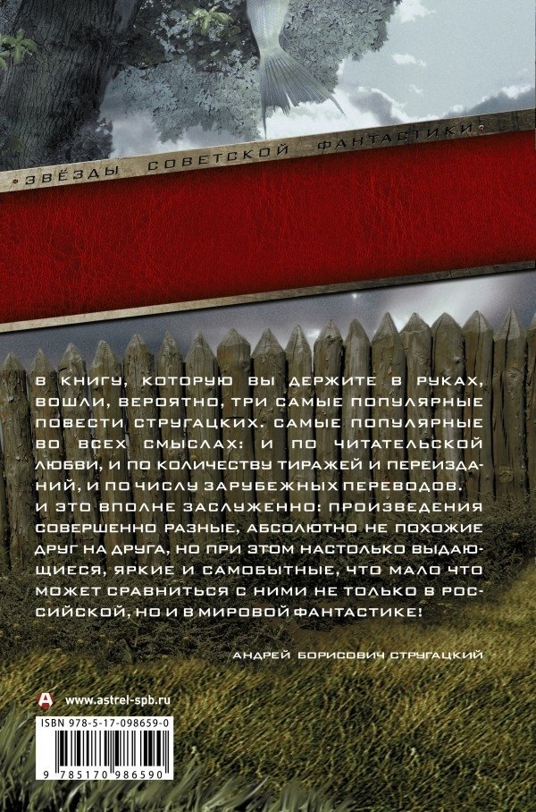 В книгу, которую вы держите в руках, вошли, вероятно, три самые популярные повести Стругацких. Самые популярные во всех смыслах: и по читательской любви, и по количеству тиражей и переизданий, и по числу зарубежных переводов. И это вполне заслуженно: произведения совершенно разные, абсолютно не похожие друг на друга, но при этом настолько выдающиеся, яркие и самобытные, что мало что может сравниться с ними не только в российской, но и в мировой фантастике!