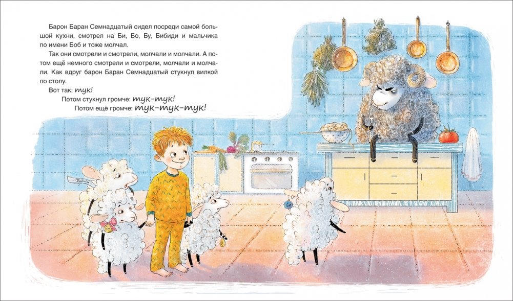 Каждую-прекаждую ночь мальчик по имени Боб отправлялся в Страну сладких снов, где его уже ждали овечки Би, Бо, Бу и Бибиди. На этот раз им предстоит встретить самого жадного барона Барана Семнадцатого и отправиться в Страну похищенных снов, чтобы победить самого вредного и самого глупого волка. Книжка для малышей, написанная финалистом конкурса Новая книга, писательницей Дианой Островерховой. Это современная сказка, которую так здорово читать перед сном снова и снова, рассматривать картинки и проговаривать с малышом повторяющиеся фразы.