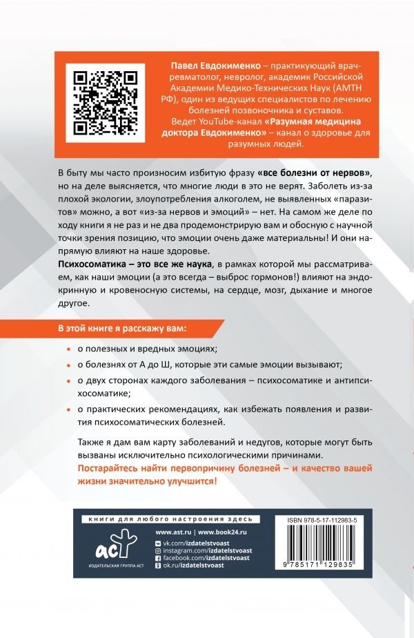 Также я дам вам карту заболеваний и недугов, которые могут быть вызваны исключительно психологическими причинами.