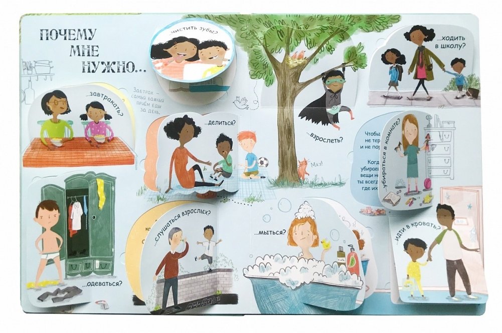 Яркие и детальные иллюстрации, а также более 60 створок, за которыми прячутся ответы на вопросы о взрослении и половом воспитании.