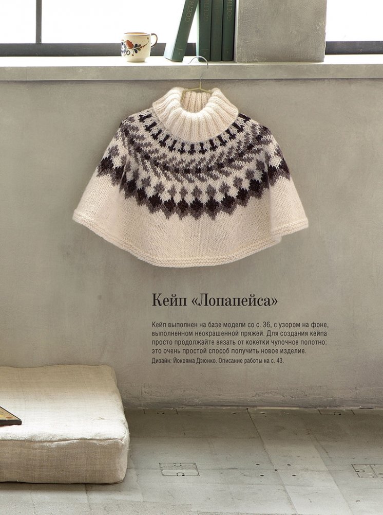 Разнообразные способы конструирования! Среди выполненных от горловины моделей можно выделить изделия с круглой кокеткой, прибавления в которых выполняются в соответствии с узором, и изделия с рукавами реглан, прибавления в которых выполняются по регланным линиям. На каком бы узоре кокетки вы ни остановили свой выбор в процессе выполнения изделия, удовольствие от вязания гарантировано!