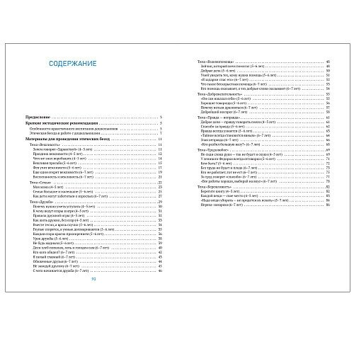 Этические беседы построены в формате развивающего диалога на основе доступных дошкольникам литературных произведений.