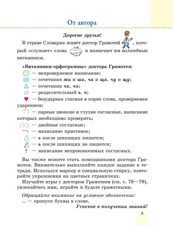 В тетради представлена система заданий по русскому языку для формирования у учащихся умений и навыков, предусмотренных учебной программой для 3 класса. Пособие содержит игровой набор, многоразовые тренажёры по совершенствованию орфографических и грамматических умений и навыков. Его можно использовать как на занятиях в школе, так и для самостоятельной работы дома.