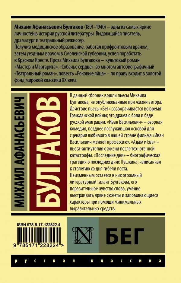 Действие пьесы "Бег" разворачивается во время Гражданской войны; это драма о боли и беде русской эмиграции. "Иван Васильевич" – озорная комедия, позднее послужившая основой для сценария любимого в нашей стране фильма "Иван Васильевич меняет профессию".