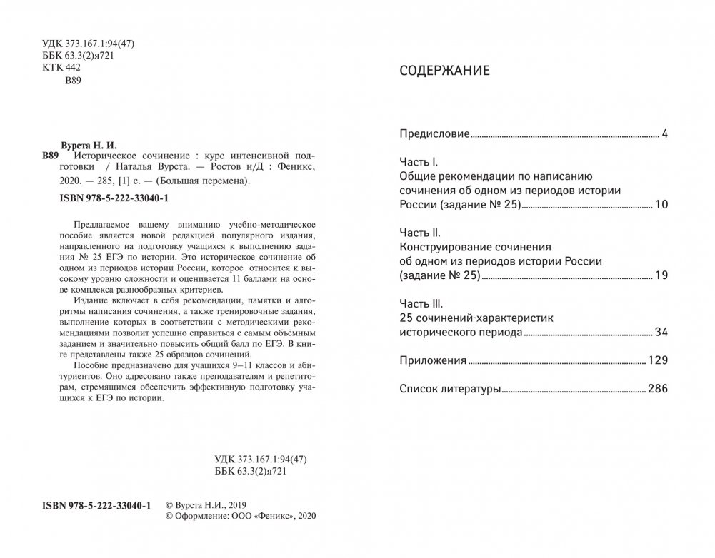 Издание включает в себя рекомендации, памятки и алгоритмы написания сочинения, а также тренировочные задания, выполнение которых в соответствии с методическими рекомендациями позволит успешно справиться с самым объёмным заданием и значительно повысить общий балл по ЕГЭ. В книге представлены также 25 образцов сочинений.