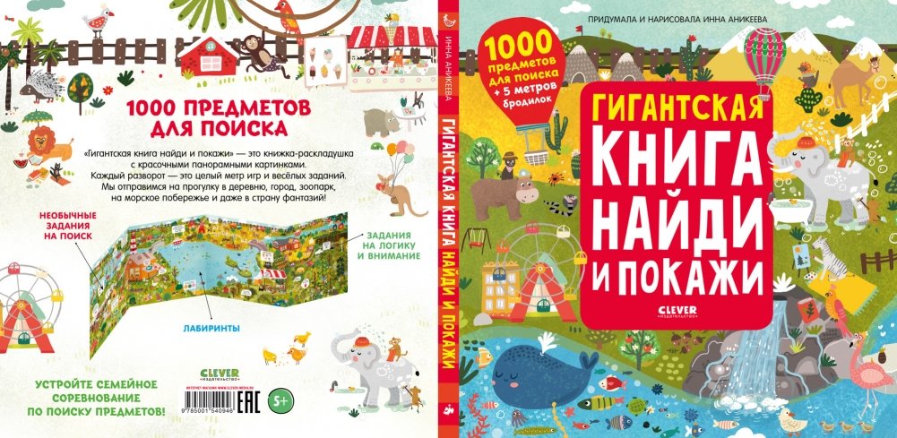 «Гигантская книга “найди и покажи”» надолго увлечет вашего ребенка, да и всю семью. Ведь каждая ее страница — это яркий сюжет, в котором нужно найти множество спрятанных животных или предметов. Бродите по городу, отправляйтесь на прогулку в деревню, зоопарк, на морское побережье или даже в страну фантазий.