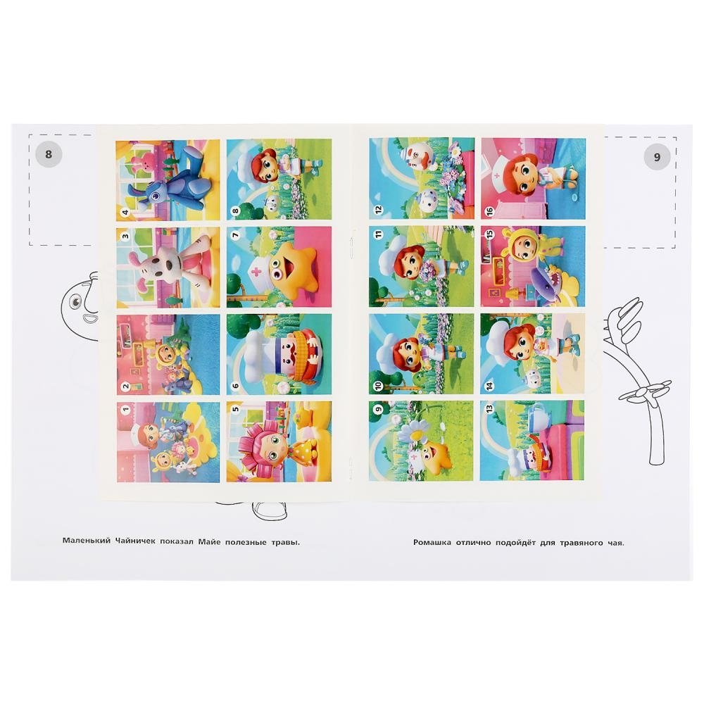 Раскраска «Волшебная кухня. Травяной чай» из серии «Наклей и раскрась» ТМ «УМка» приглашает детей порисовать: