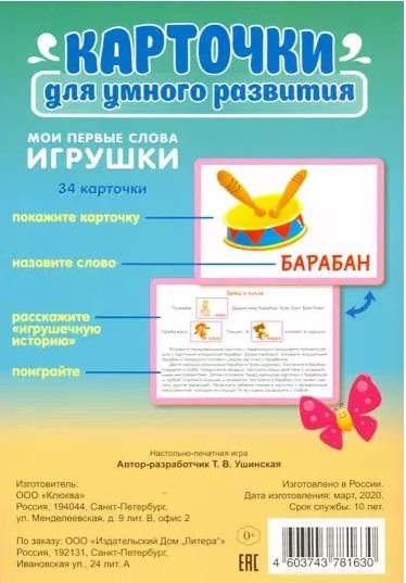 Карточки для умного развития. Мои первые слова. Игрушки. 34 карточки
