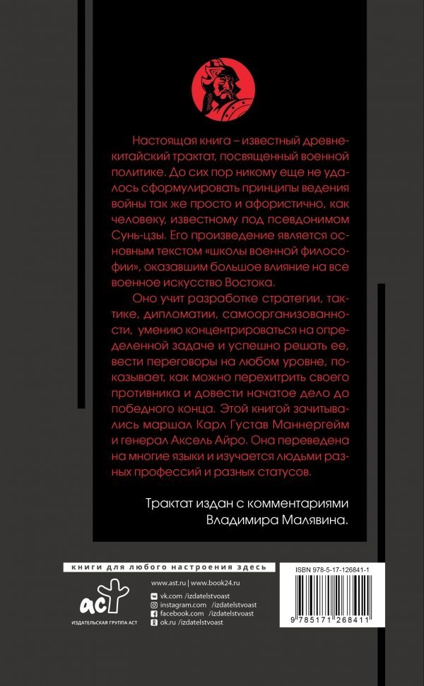 Оно учит разработке стратегии, тактике, дипломатии, самоорганизованности, умению концентрироваться на определенной задаче и успешно решать ее, вести переговоры на любом уровне, показывает, как можно перехитрить своего противника и довести начатое дело до победного конца. Этой книгой зачитывались маршал Карл Густав Маннергейм и генерал Аксель Айро. Она переведена на многие языки и изучается людьми разных профессий и разных статусов.