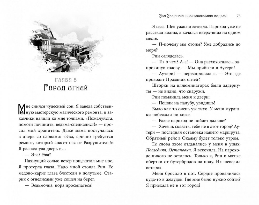 Юная Эва Эвергрин должна заработать звание начинающей ведьмы до того, как ей исполнится тринадцать. И если она этого не сделает, то может потерять свое волшебство навсегда. Волноваться вроде бы нет причин, ведь для большинства юных ведьм и волшебников вступительный экзамен достаточно прост – надо прожить один лунный месяц в другом городе, помогать его жителям своим волшебством, делать добро и летать на метле.