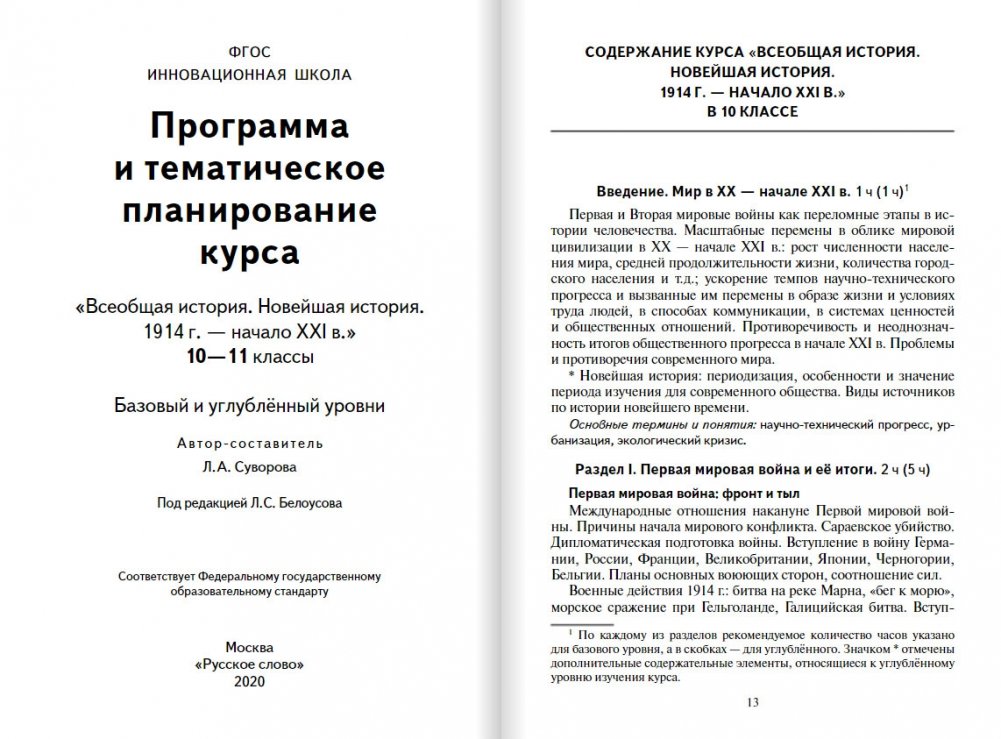 Программа и тематическое планирование составлены на основе положений Федерального государственного образовательного стандарта среднего общего образования (2012), Примерной основной образовательной программы среднего общего образования (2016), а также проекта Концепции нового учебно-методического комплекса по всеобщей истории (2016) и ориентированы на курс «Всеобщая история. Новейшая история. 1914 г. — начало XXI в.», изложенный в учебнике для 10–11 классов издательства «Русское слово». В программе представлено содержание курса «Всеобщая история. Новейшая история. 1914 г. — начало XXI в.», даётся примерное тематическое планирование с характеристикой основных видов деятельности обучающихся в соответствии с планируемыми результатами обучения. Издание адресовано преподавателям общеобразовательных организаций.