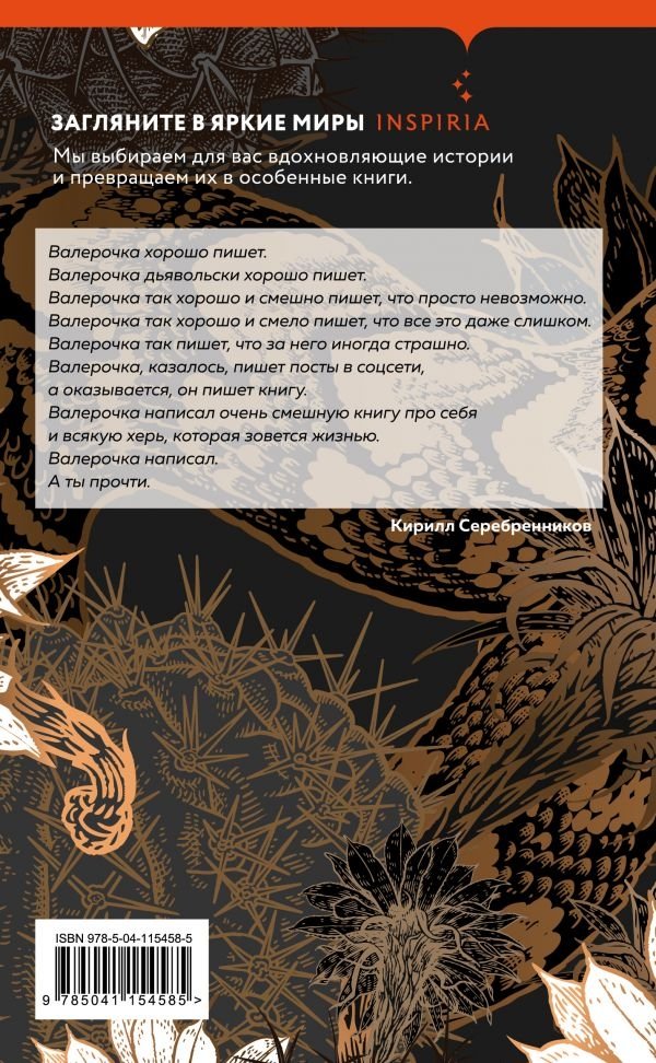У Валерия Печейкина никогда до этого не было книги. В основном Валерия знают по его работе в "Гоголь-центре" (Печейкин курирует в театре программу "Гоголь+" — беседы с актерами, драматургами и режиссерами — авторами спектаклей и просто с теми, без кого сегодня трудно представить культурную жизнь Москвы). В книге мы вместе с автором собрали самые яркие и ироничные эссе и рассказы, в которых, как у Чехова (название книги не случайно!), люди обедают, только обедают, а в это время слагается их счастье и разбиваются их жизни.