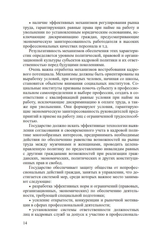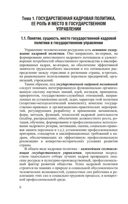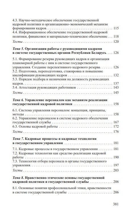 Рассматриваются роль и место государственной кадровой политики в государственном управлении; теоретические и методологические основы; механизмы реализации; организация работы с руководящими кадрами в системе государственных органов в Республике Беларусь, а также кадровые процессы и кадровые технологии в государственном управлении; нравственно-этические основы государственной кадровой политики и государственной службы; основы правового положения государственных служащих и особенности прохождения государственной службы в Республике Беларусь.