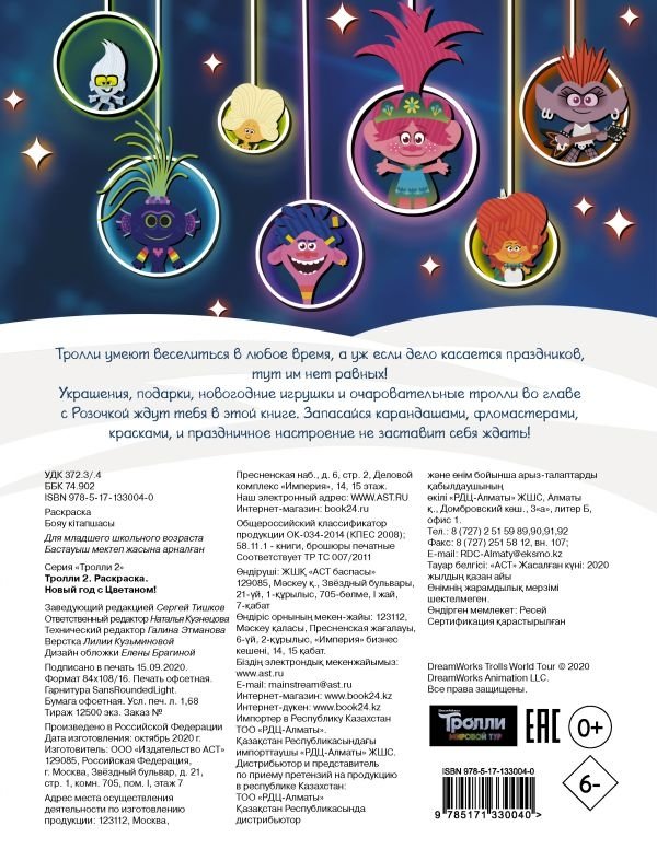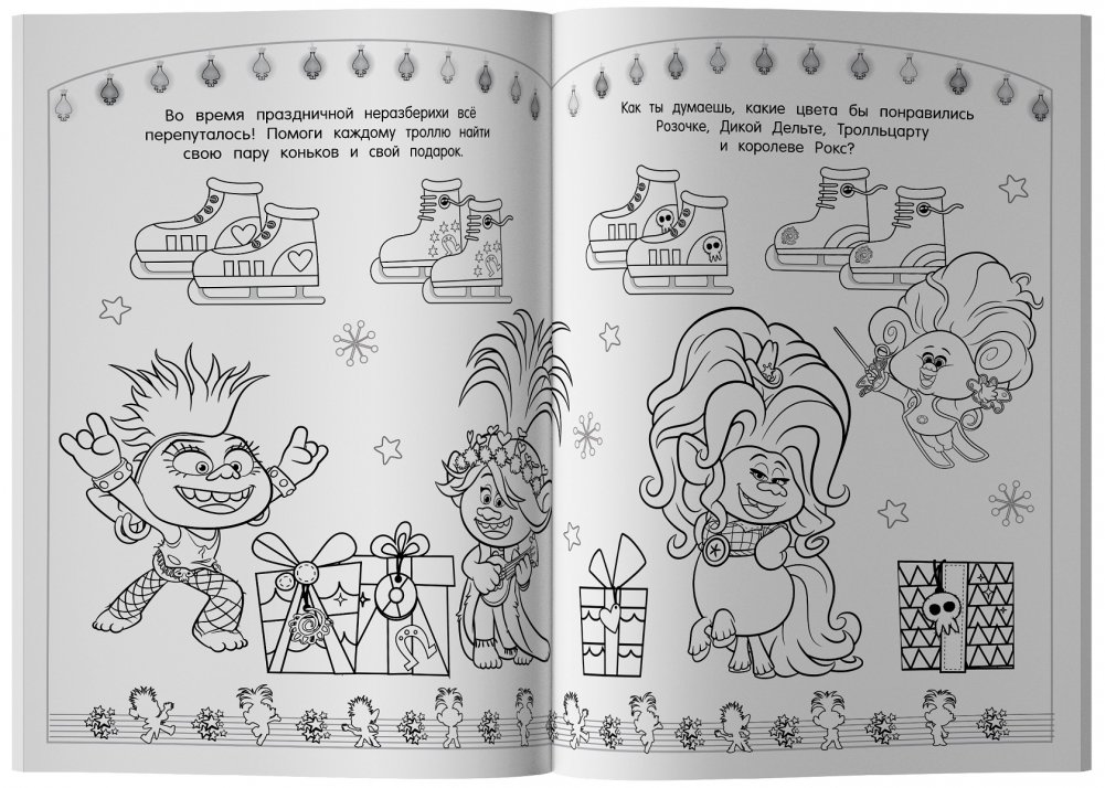 Украшения, подарки, новогодние игрушки и очаровательные тролли во главе с Розочкой ждут тебя в этой книге. Запасайся карандашами, фломастерами, красками и праздничное настроение не заставит себя ждать!
