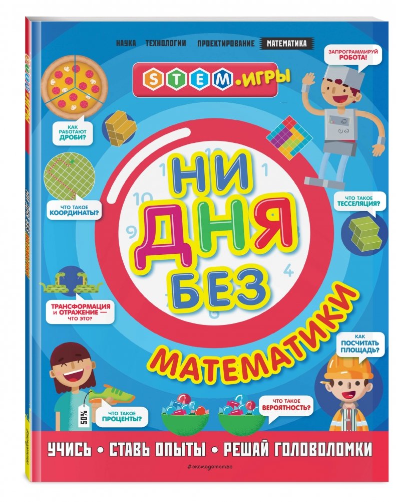 "Ни дня без математики" с помощью забавных иллюстраций и увлекательных заданий объясняет, как изумительна математика и почему наша жизнь невозможна без неё. А благодаря интересным экспериментам математика из скучной дисциплины превратится в познавательную игру.