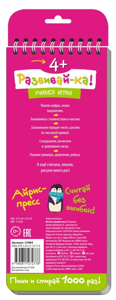 Многоразовые прописи на пружинке. Весёлая арифметика. Пишем цифры и считаем