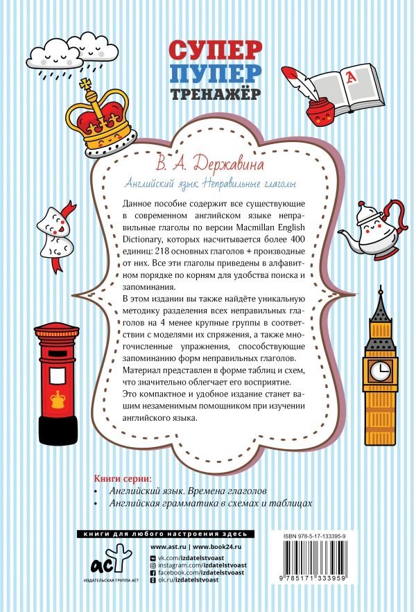 В этом издании вы также найдёте уникальную методику разделения всех неправильных глаголов на 4 менее крупные группы в соответствии с моделями их спряжения, а также многочисленные упражнения, способствующие запоминанию форм неправильных глаголов.