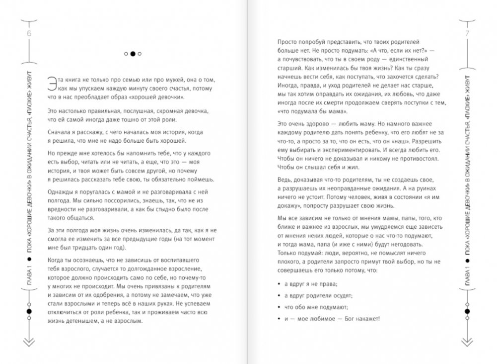 В этой книге автор поднимает один из самых главных вопросов: как научиться жить именно своей жизнью, а не соответствовать чужим требованиям и шаблонам, выйти из замкнутого круга ожиданий, ограничений, соответствий? Как перестать быть «хорошей девочкой» и стать наконец счастливой?