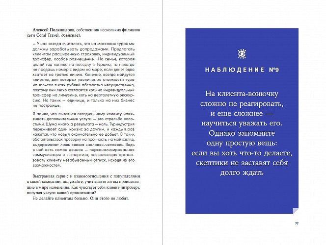 Автору удалось собрать и проанализировать многолетний опыт самых разных российских компаний: от небольшого санатория в Сочи до сервиса «Яндекс. Такси».