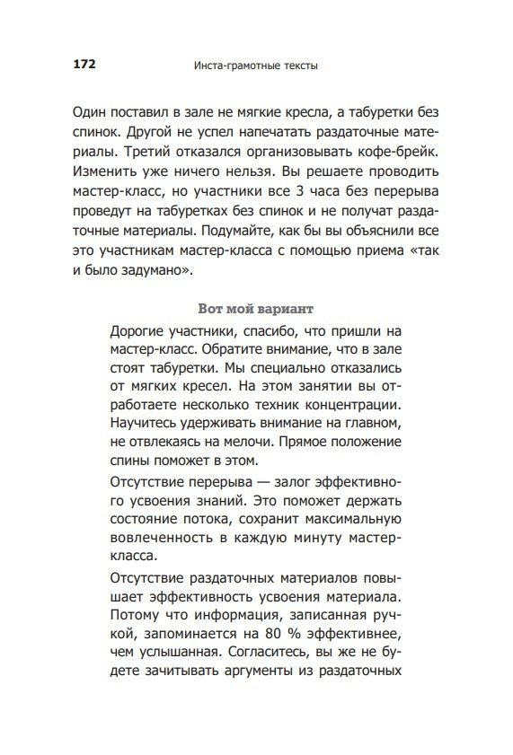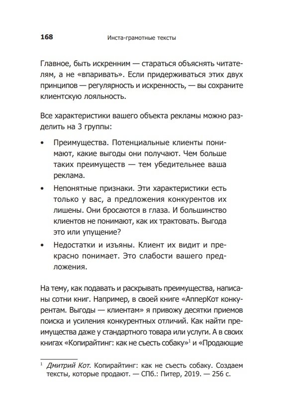 Алгоритмы социальных сетей меняются с завидной регулярностью. Важно ли их знать? Конечно! За обновлениями нужно следить? Безусловно. Но давайте начистоту. Вы же пишете не для того, чтобы удивить роботов Инстаграма, верно? Что толку от знаний алгоритма формирования ленты в Фейсбуке, если ваши посты скучные? Вас читают люди, а не искусственный интеллект. Вам нужны эмоции, вы рассчитываете на продажи, верно? Алгоритмы сетей меняются — люди остаются людьми. Освойте приемы создания убедительных постов. Интересных, вовлекающих, вызывающих улыбку или грусть, желание действовать или остановиться. Как привлечь внимание? Как вовлечь в чтение? Как вызывать нужную вам реакцию? Читайте книгу и узнаете.