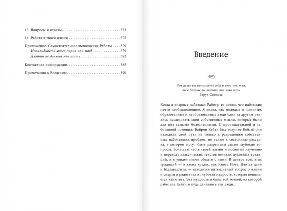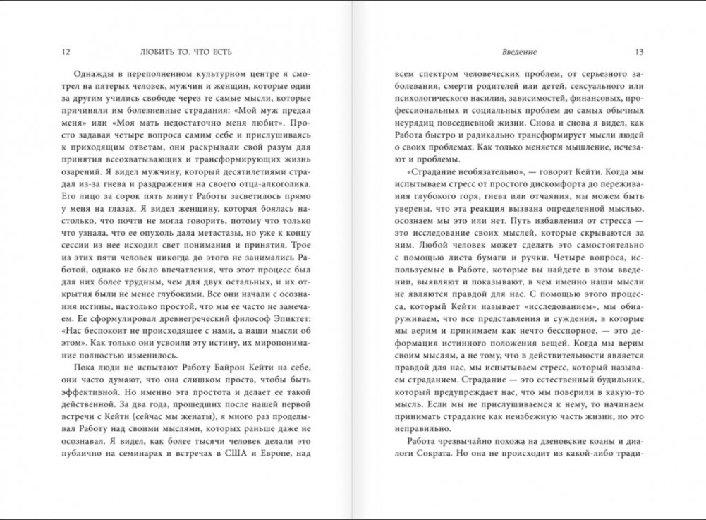"Любить то, что есть" покажет вам шаг за шагом, на ясных и ярких примерах, как именно использовать этот РЕВОЛЮЦИОННЫЙ МЕТОД для себя. Вы увидите, как люди работают с Кейти над широким спектром повседневных трудностей: от жены, готовой бросить мужа, потому что он хочет больше секса, до рабочего, парализованного страхом терроризма. Многие люди через 4 простых вопроса и переворот изначального утверждения открыли для себя способность решать любые проблемы. Они говорят, что через РАБОТУ испытывают чувство прочного мира и находят ясность и энергию, чтобы действовать, даже в ситуациях, которые ранее казались невозможными.