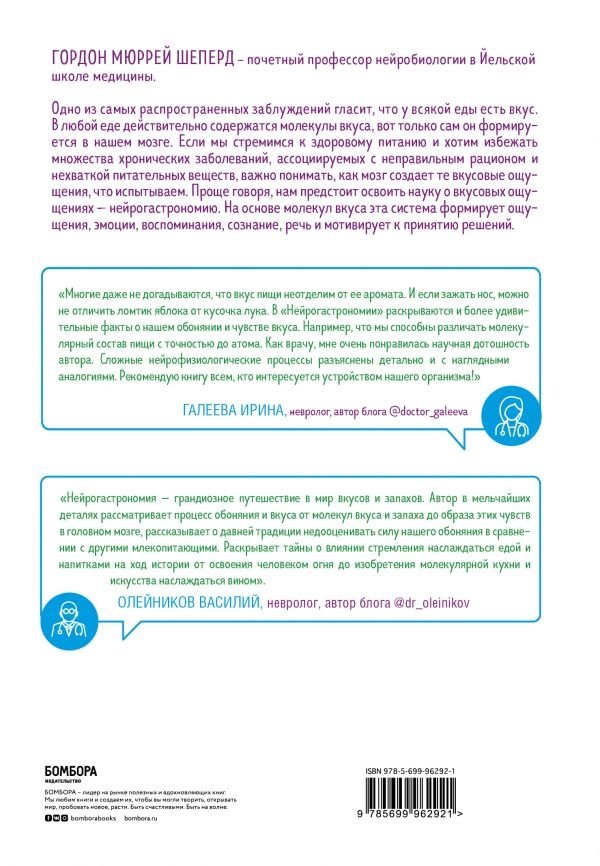 Про еду нам важно знать все: какого она цвета, какова она на запах и вкус, приятны ли ее текстура и температура. Ведь на основе этих знаний мы принимаем решение о том, стоит или не стоит это есть, удовлетворит ли данное блюдо наши физиологические потребности. На восприятие вкуса влияют практически все ощущения, которые мы испытываем, прошлый опыт и с кем мы ели то или иное блюдо. Нейрогастрономия (наука о вкусовых ощущениях) не пытается "насильно" заменить еду на более полезную, она направлена на то, как человек воспринимает ее вкус. Профессор Гордон Шеперд считает, что мы можем не только привыкнуть к более здоровой пище, но и не ощущать себя при этом так, будто постоянно чем-то жертвуем. Чтобы этого добиться, придется ввести в заблуждение мозг и заставить его думать, например, что вареное вкуснее жареного. А как это сделать — расскажет автор книги. Внимание! Информация, содержащаяся в книге, не может служить заменой консультации врача. Перед совершением любых рекомендуемых действий необходимо проконсультироваться со специалистом.