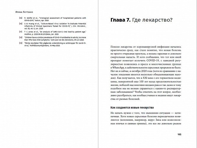 Что мы знаем о SARS-CoV-2, почему он убивает одних и бессимптомно проходит у других, безопасна ли вакцина и когда будет найдено лекарство, как мы лечим COVID-19 без него, можно ли бороться с патогеном, не закрывая планету, — книга отвечает на эти и многие другие вопросы. Хотя пандемия еще не закончилась, и мы все время получаем новые данные о вирусе, изложенные в тексте фундаментальные основы уже не поменяются: они служат каркасом, на который читатель сможет нанизывать новые знания.