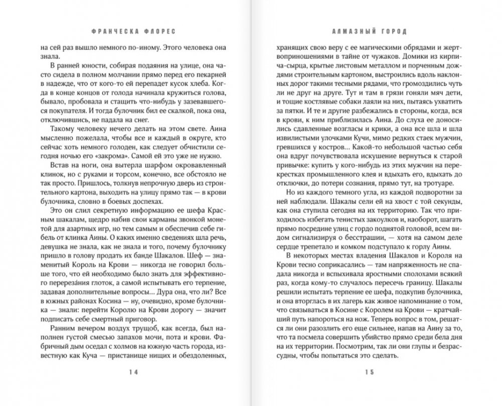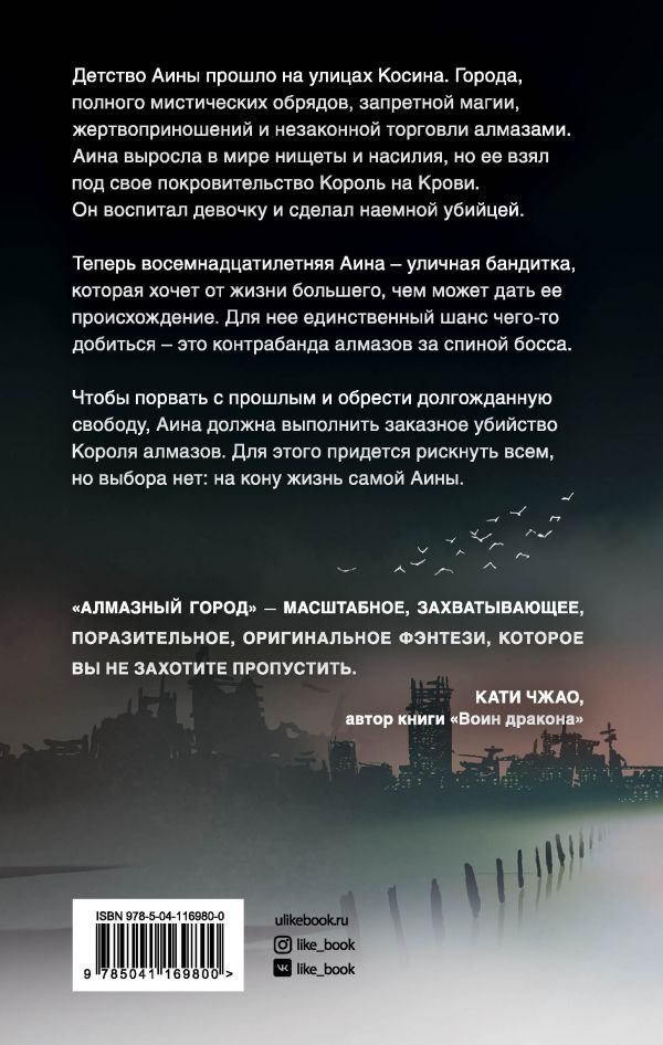 Детство Аины прошло на улицах Косина. Города, полного мистических обрядов, запретной магии, жертвоприношений и незаконной торговли алмазами. Аина выросла в мире нищеты и насилия, но ее взял под свое покровительство Король на Крови. Он воспитал девочку и сделал наемной убийцей. Теперь восемнадцатилетняя Аина – уличная бандитка, которая хочет от жизни большего, чем может дать ее происхождение. Для нее единственный шанс чего-то добиться – это контрабанда алмазов за спиной босса. Чтобы порвать с прошлым и обрести долгожданную свободу, Аина должна выполнить заказное убийство Короля алмазов. Для этого придется рискнуть всем, но выбора нет: на кону жизнь самой Аины.